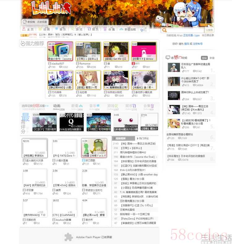 这是2011年10月6日15点39分36秒的B站,此时,带有炫技成分的UP主自制MAD(多半是动画混剪、且普遍制作难度极高)、来自各大字幕组的番剧资源、以及主要以《东方Project》技巧探讨为主的游戏视频,可谓是其内容方面的“三大支柱”。