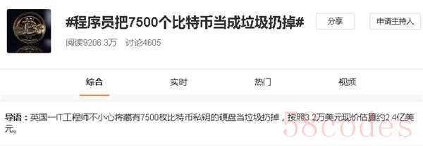 然而,在比特币连创历史新高的同时,有一则消息却迅速冲上微博热搜:程序员把7500个比特币当成垃圾扔掉。