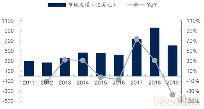 目前 DRAM 市场规模整体约 603 亿,占总体存储市场规模约 33%,位列数字存储市场规模第一。 近年来受益于数据资料中心、智能手机、加密货币等市场需求,DRAM 市场规模总体呈现上升趋势,2019 年由于前期扩产能和去库存等因素,市场规模有所下降。