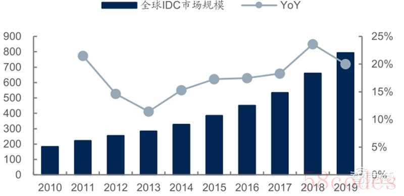 全球 IDC 市场规模(亿美元)及同比增速(% )