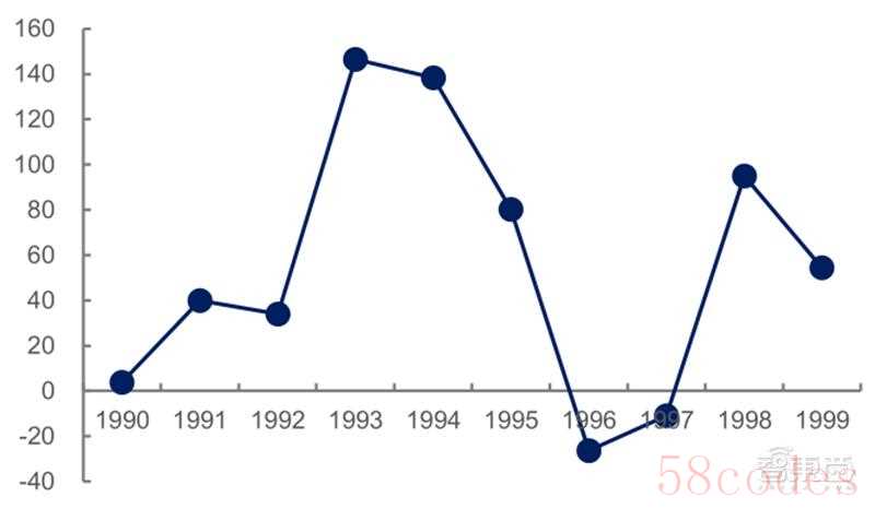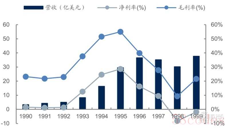 在 1991 年规模达到 1.35 亿美元,1992 年达到 2.70 亿美元,1993年升至 6.40 亿美元。1994 年年中,Intel 推出的奔腾处理器以及同步推出的笔记本大受市场欢迎,闪存市场在 1994 年规模达到 8.65 亿美元,1995 年直接增长至 18.60 亿美元。