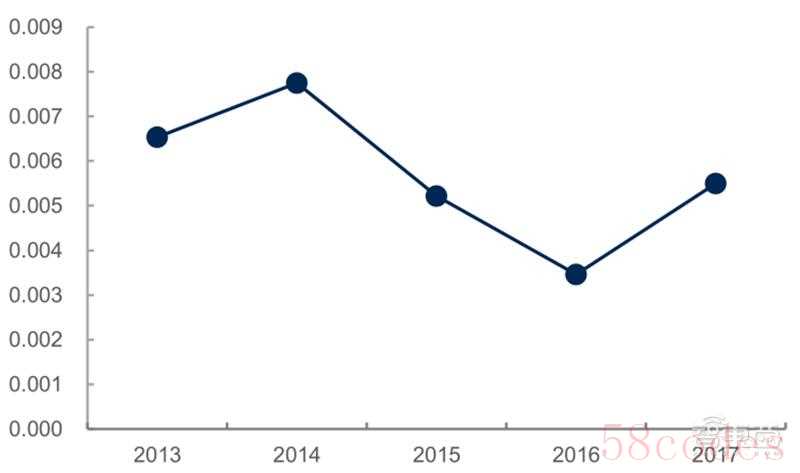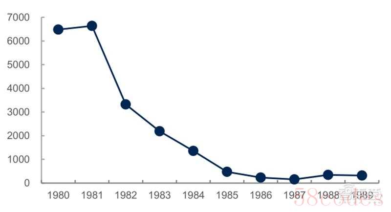 1980-2017 年机械硬盘每 GB 价格变化幅度(%)