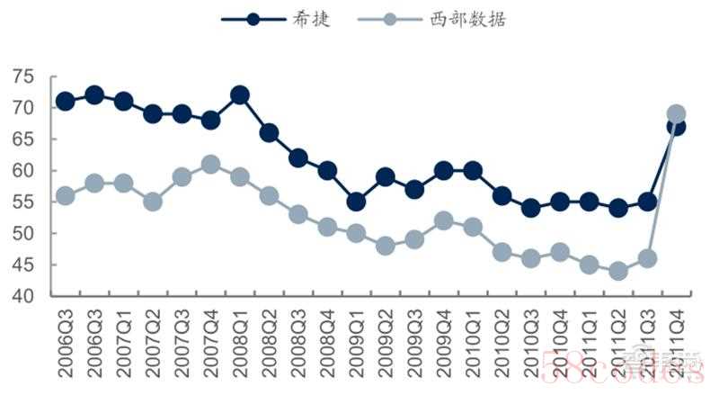 2010 以后机械硬盘厂商数量逐渐减少。2008 年以前,机械硬盘市场集中度较低,各厂商竞争激烈。而后,市场集中度提升,西部数据、希捷等厂商成为机械硬盘龙头,占据全球市场超过 90%份额。