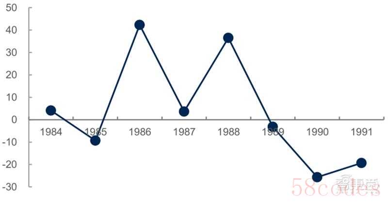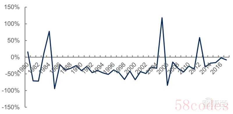 1974-2018 年DRAM 每GB 价格变化幅度(% )