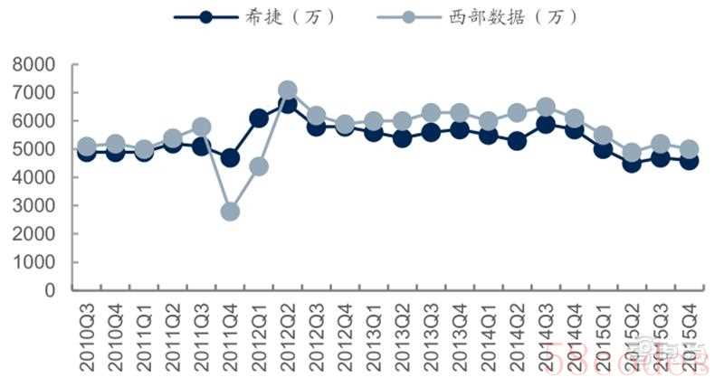 硬盘厂商进入整合期。2000 年起是硬盘行业的整合期,希捷、西数、IBM、三星、迈拓、昆腾、东芝、富士通等各大硬盘厂商竞争激烈。2000 年迈拓收购昆腾,2003 年日立环储 IBM 硬盘事业部,2005 年希捷宣布收购迈拓,2009 年,富士通硬盘被东芝收购,形成希捷、西数、日立、三星、东芝“春秋五霸”时代。2011 年西部数据收购日立环储、希捷收购三星硬盘,形成“三国鼎立”局面。