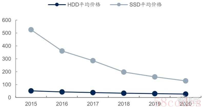 随着 SSD 平均价格与 HDD 平均价格差异的逐渐缩小,以及 SSD 各方面的性 各方面的性能优势,硬盘市场逐渐被 SSD 占领,HDD 出货量从 2013 年开始明显下降。