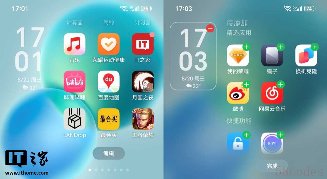 小红书和B站 App 时间背景取色效果更为细节的是,荣耀 Magic V Flip2 甚至还采用了应用取色的特性,会根据应用主题色自适应调整左侧时间区域背景底色。这背后的逻辑,是荣耀通过追求内外屏一致的 App 交互体验,来提升用户的外屏使用率。