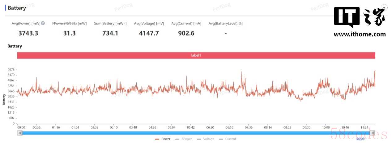 两局对战一共 20 分钟左右,游戏平均帧数均为 120 帧,帧率曲线波动很小,1% Low 帧则在 65 帧左右,游戏平均功耗 3.7W。20 分钟手机电量从 82% 掉到 74%,耗电 8%。
