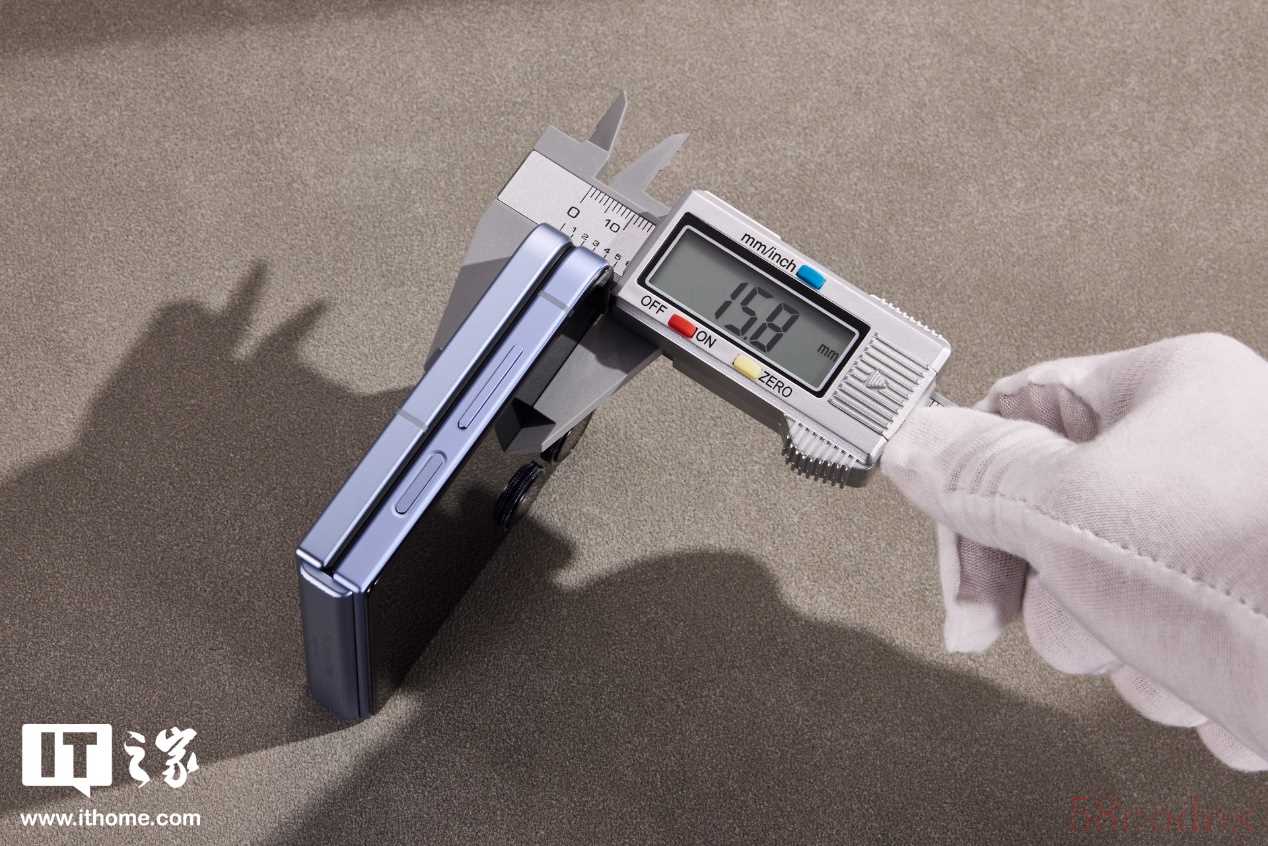 轻薄便携是小折叠的非常重要的设计属性,荣耀 Magic V Flip2 高定款也不例外。官方标称的尺寸数据为 6.82 英寸内屏,6.9mm 展开厚度,15.5mm 折叠厚度以及 204g 重量,IT之家实测数据仅供参考。