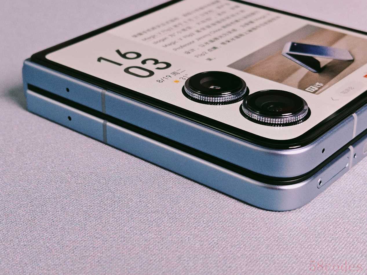 另一处设计上的细节变化来自外屏上的镜头模组。用过或者关注小折叠手机的朋友都知道,目前多数主流的小折叠产品,基本将外屏镜头模组位置跟随传统直板手机的设计放在左侧,因此折叠状态下右手握持手机,摄像头一定会抵到大拇指下方肌肉,还容易弄脏镜头。