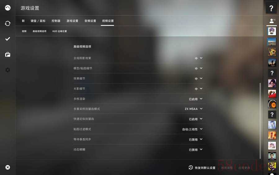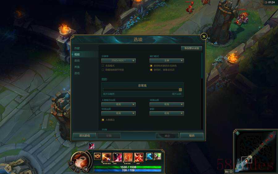 首先是《英雄联盟》,设置最高画质,开启2560x1600全分辨率,关闭垂直同步。