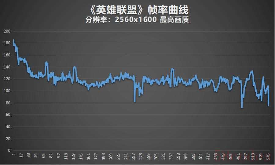 可以看到,游戏帧率相对比较稳定,平均帧率在118FPS左右,最低帧率也高于60FPS。整体运行非常流畅。完全可以胜任《英雄联盟》的日常游戏需求。