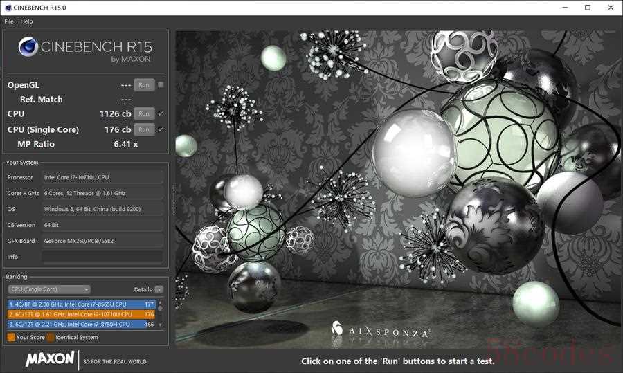 35W模式下进行CineBench R15跑分,多核成绩达到了惊人的1126cb,单线程成绩也高达176cb。