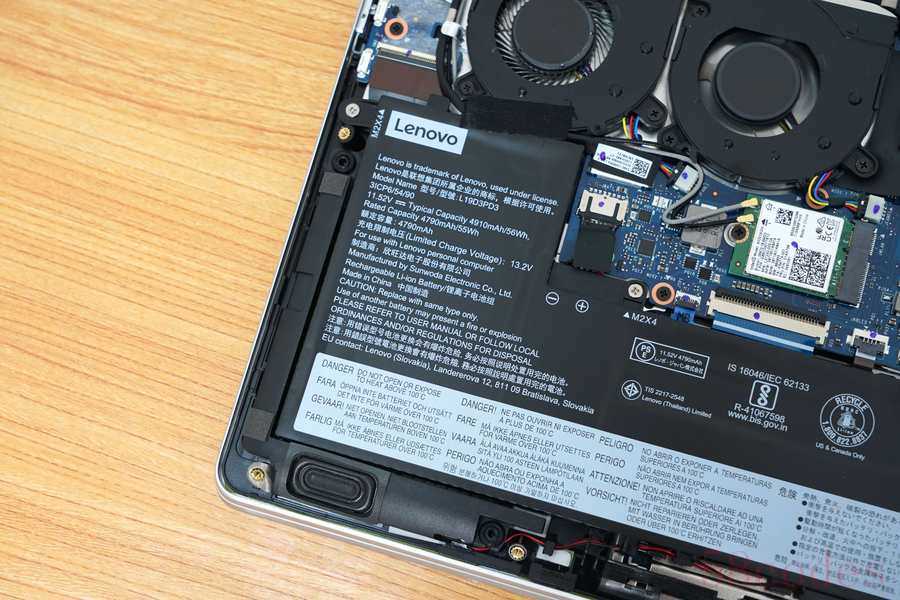 散热设计采用了小尺寸轻薄本产品比较少见的双风扇双热管设计。这与小新Pro配备的6核心处理器以及专门开发的35W“狂暴模式”有一定关系。电池则采用了L形布局,尽可能增加了空间利用率。内存为板载设计,不可更换,但小新Pro全系列标配了16GB内存,一般来说已经可以满足大多数人的使用需求,一步到位也就不需要升级了。