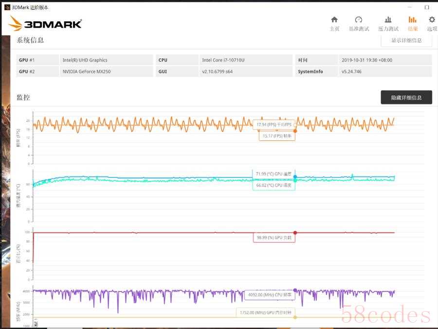 在最新版本的3DMark Fire Strike中,显卡得分为3875,确实要比多数在3300到3500分左右的MX250要强上一些。