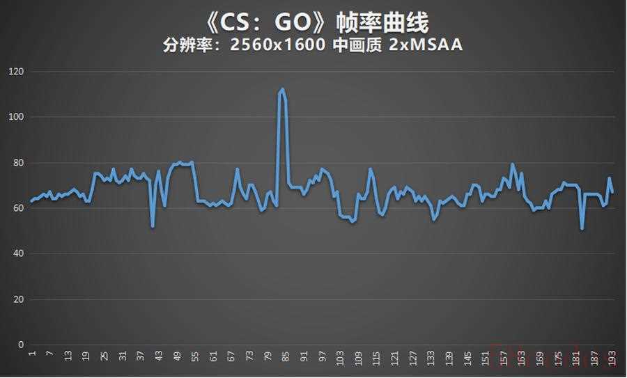 然后是《CS:GO》同样设置2560x1600分辨率,中等画质。2xMSAA抗锯齿。