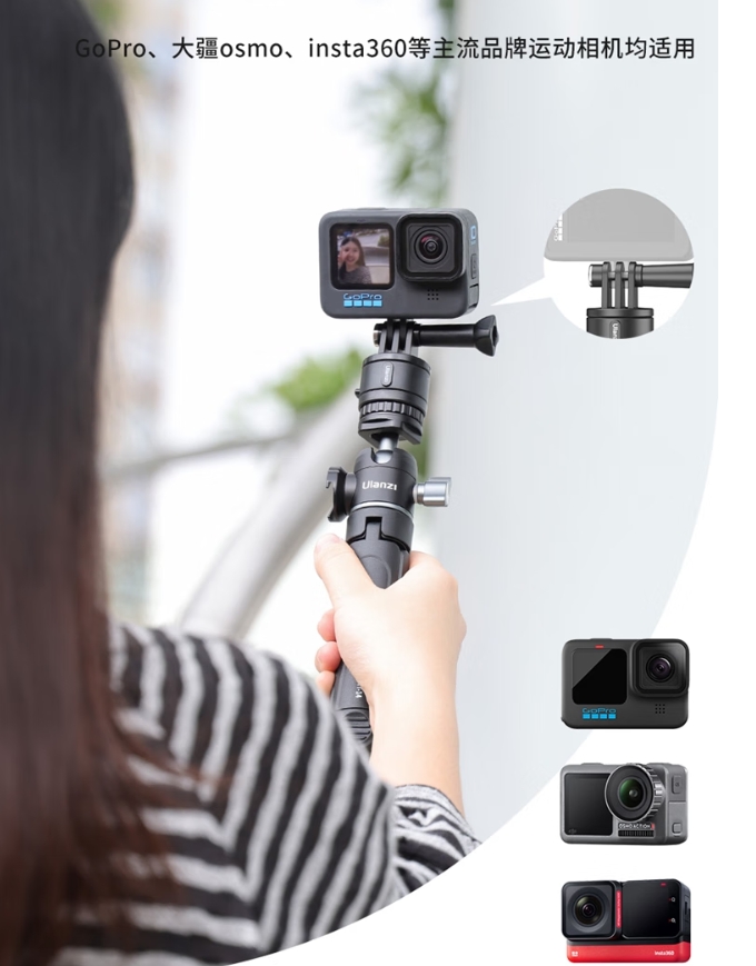 l 兼容性:自带GoPro转接头,大疆/Insta360需加MT-08底座