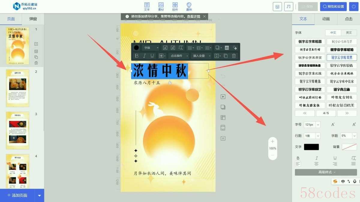 它的模板库是真的丰富,不管你是要做产品推广、活动函,还是企业招聘、节日贺卡,一搜就能找到对应的模板。打开工具选好模板,改内容特别简单:双击文字就能改文案,换字体、调字号在右边面板点几下就行;图片也能一键替换,既能传自己电脑里的图,还能直接用工具里的免费素材,不用再到处找图浪费时间。