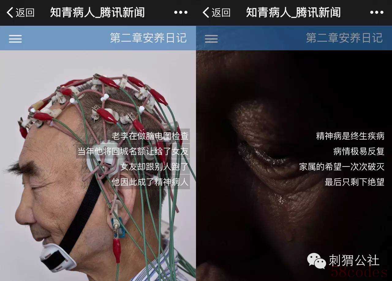腾讯新闻在做这个H5作品时,为了更适应移动互联网的传播,采取了削减知青历史背景、淡化事情病人的病状、开展与腾讯公益的合作、将网页浏览转化为真实的关爱、精选采访个例等方案,在微信朋友圈刷屏。