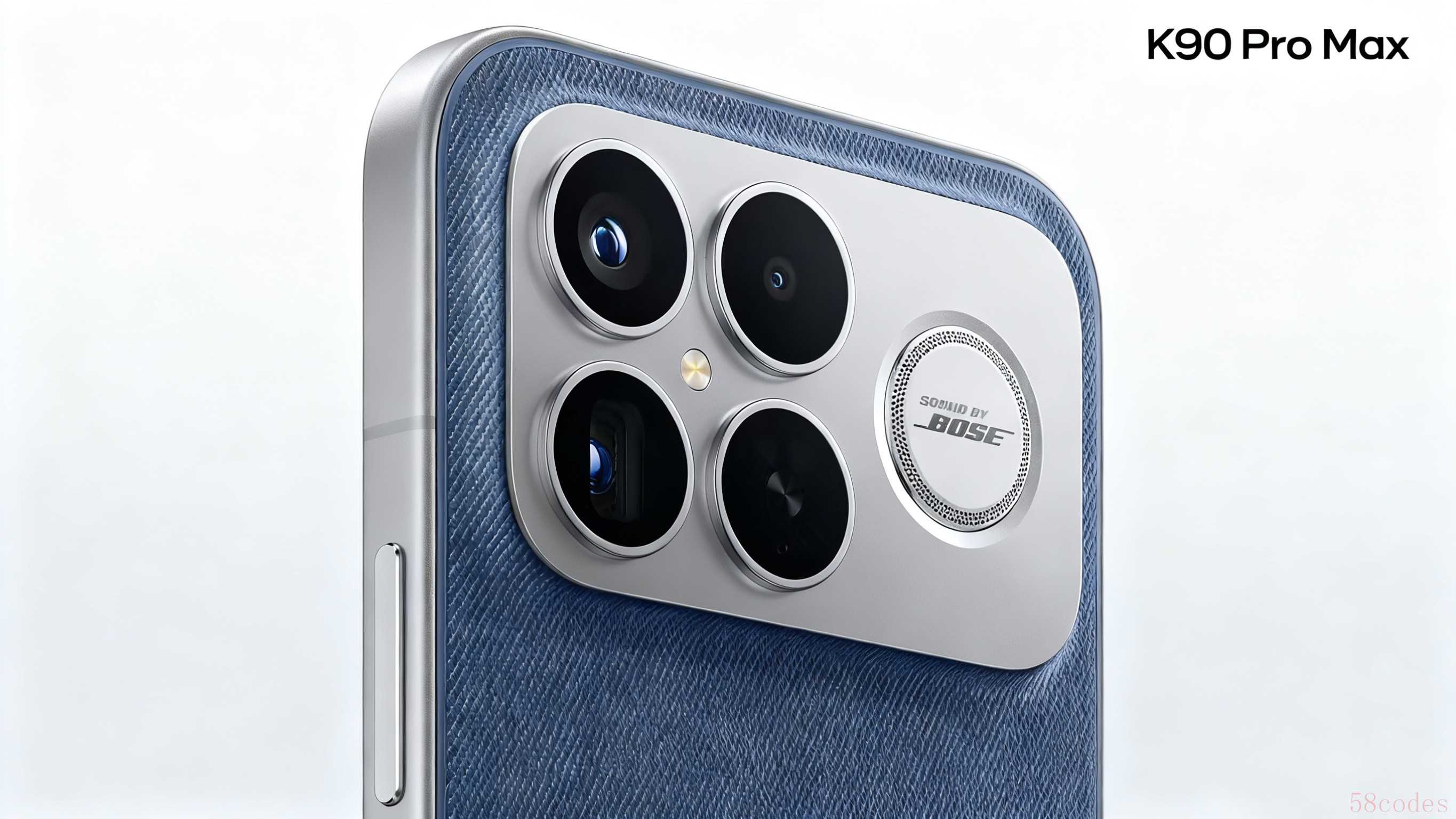 这次REDMI K90 Pro Max,设计上有几分K70系列的影子,最大的区别在于相机模组右侧的Deco处不再是简单的玻璃装饰,而是一个打上了“Sound by Bose”标志的硕大扬声器。