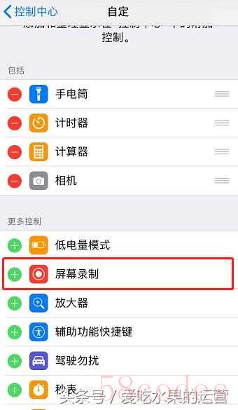 当手机系统跟新到IOS11版本后,iphone就可以通过设置完成“录屏”的模块选择和添加: