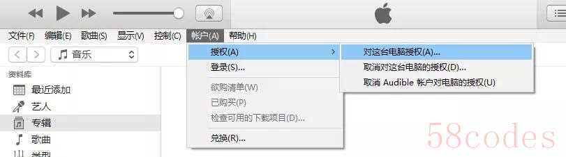 2.安装好旧版 iTunes 后,第一步点击「 账户-授权-对这台电脑授权 」,授权需要登录你的Apple ID。