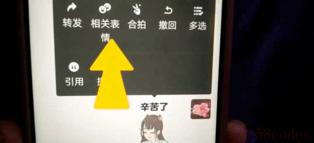 第三个功能也是很厉害的,比如说好友给我发来了一个表情包,但是我不知道用什么表情包来回复,怎么办呢?再也不用收藏表情包了,只需要用手指把这个表情包长按着,立刻在上方出现了一个“相关表情”。