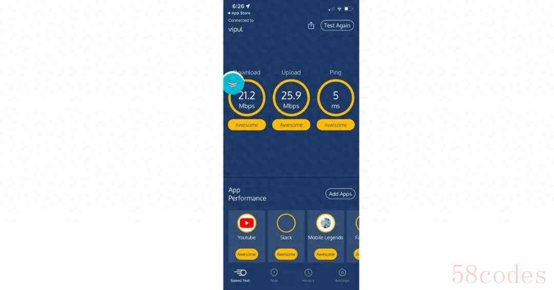 Speed Test Master是iPhone上最好的速度检查应用程序之一。该应用程序可以对2G、3G、4G、5G、DSL和ADSL进行速度测试。它配备了一个方便的WiFi分析仪,还可以测量WiFi连接的速度和强度。除了上传和下载速度外,Speed Test Master还可以诊断网络问题,检查使用网络的未经授权的设备,并生成互联网状态的实时图表。
