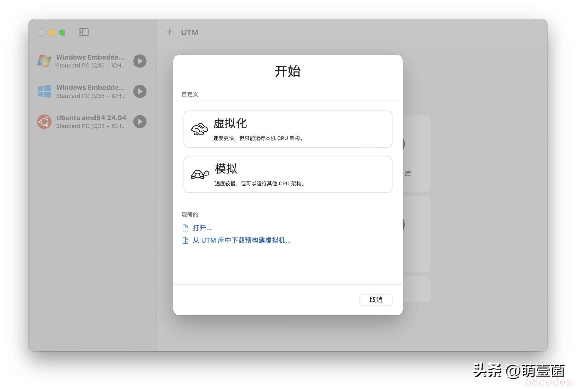 第二步:创建 Windows 虚拟机安装好 UTM 后,下一步就是“造一台虚拟电脑”:
