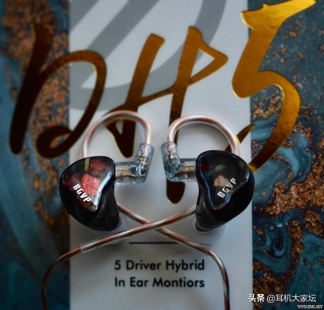 BGVP一圈四铁五单元耳机,3D打印树脂,第三代DLP 3D打印技术,进口PMMA丙烯酸纤维亲肤级材料打造。定制类公模设计,计算大量耳印数据,在佩戴上更贴合耳廓形状。圈铁Hybrid技术能提供更宽广的频率响应,中高频采用两颗Knowles RAF系列动铁单元,超高频采用两颗楼BGVP定制30042动铁单元,能大幅度提升高频密度和超高频的延伸,让声音更加均衡自然。双音腔定制镀铍复合振膜则负责低频,N52强钕磁和钕铁硼外壳镀金,能提高磁通量,让低频感更足,下潜更深,为了让动圈与动铁衔接更加顺畅,DH5采用三路分频设计,结像清晰,定位精准,层次感明显。