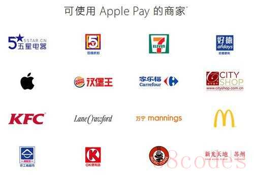 目前可使用Apple Pay的商家包括:五星电器、7-11、汉堡王、家乐福、肯德基、麦当劳、万宁、太平洋咖啡等。