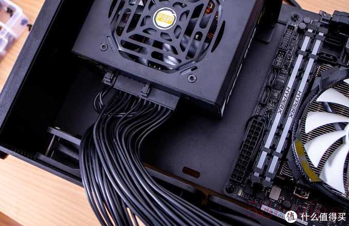 风扇装完了先不急着装显卡,我们先把供电线路排好,首先按照你的需求选出需要用的模组线,ITX 机箱我建议还是做一套定制线,由于机箱小所以费用很低,像我这样的一套黑色硅胶定制线也就 100 块上下,镀银线也可以考虑,但线会稍硬,我不是很建议使用包网线,因为包网线比较粗也比较硬不适合 ITX 使用。