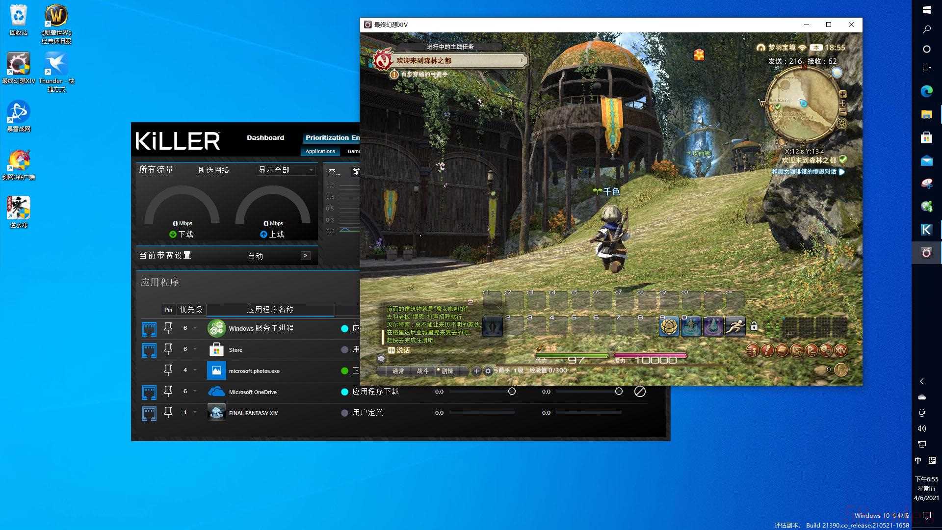 首先体验的是最终幻想14,无线网络下差别不明显。两种网络下发送和接收数据的波动都很小,连接稳定。